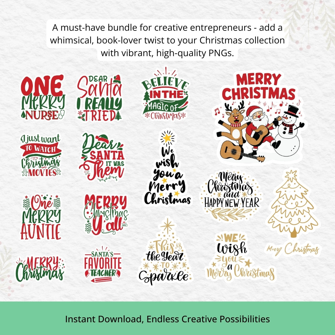 π Christmas Bookish PNG Bundle β Cozy Art for Stickers, Mugs & Tees