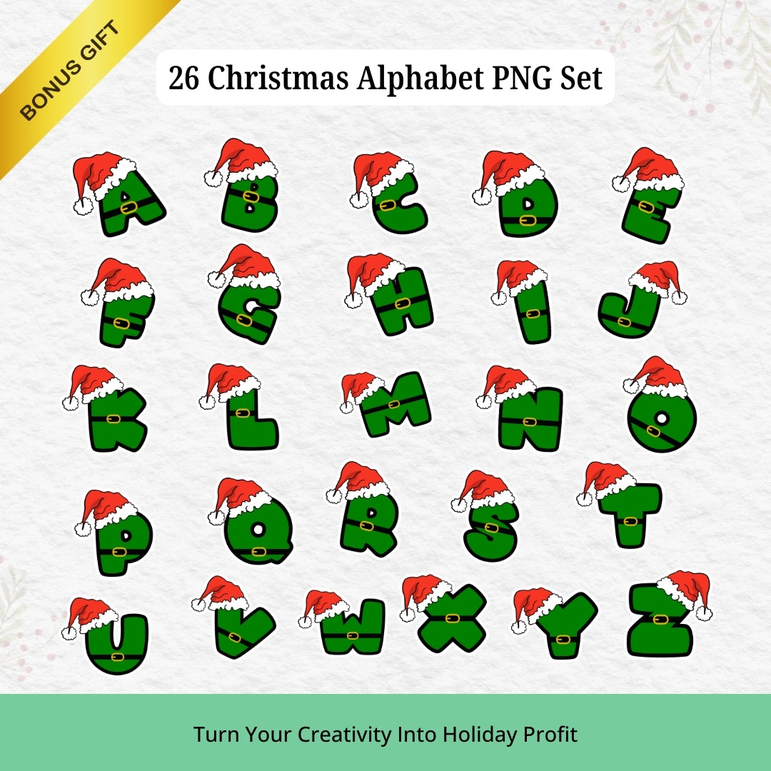 - π Bonus: 26 Christmas alphabet PNGs with Santa hats