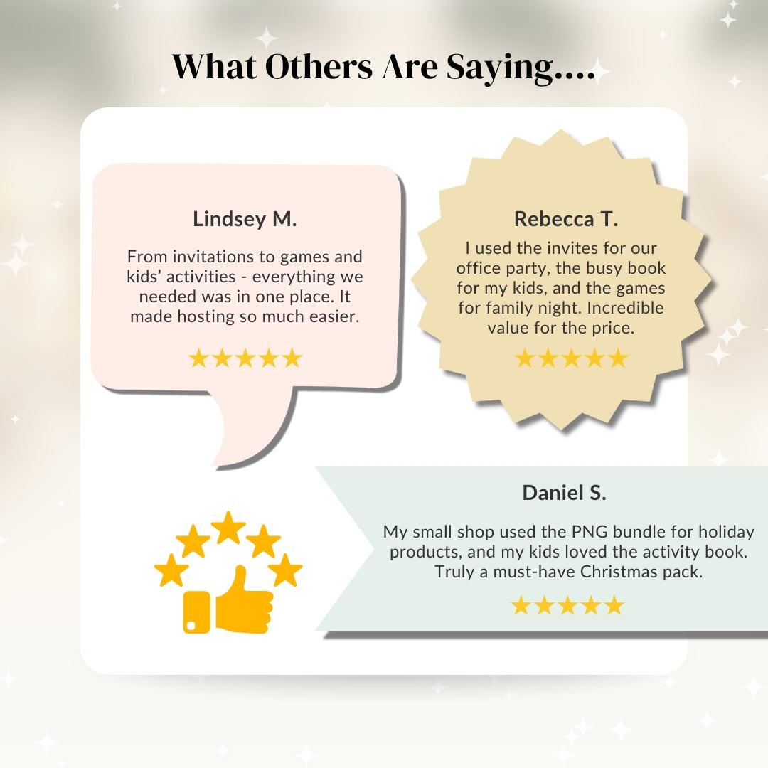 Celebrate every part of the season with one joyful bundle. From your very first Christmas as a family to staff parties, classroom fun, and cozy bookish vibes, this curated collection gives you invitations, ornaments, games, toddler activities, and festive clipart that all work beautifully together. Less stress, more magic, and memories everyone will talk about for years.