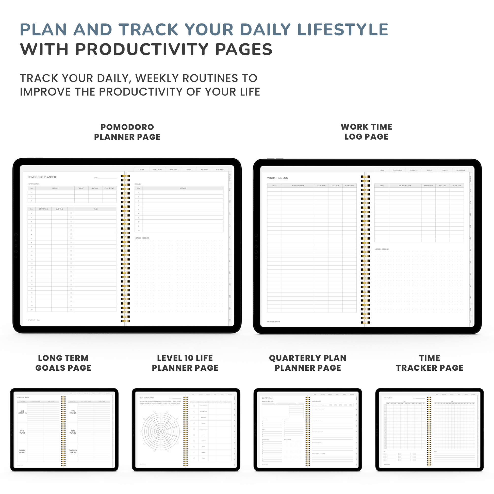 The digital planners we’ll cover in this article are all PDF documents that can be used in notetaking apps such as GoodNotes, Notability, and Noteshelf.