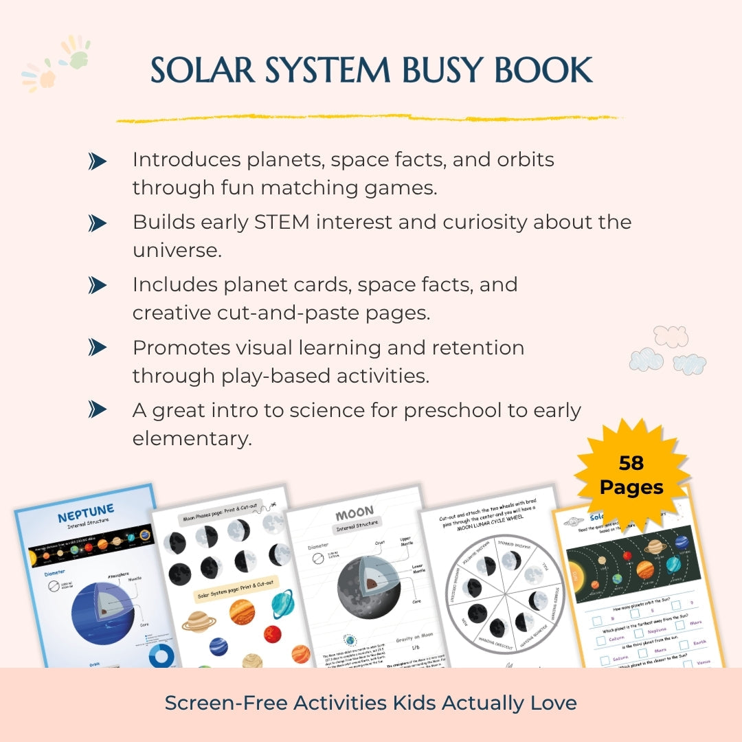 - 🪐 Solar System Busy Book – Planets, orbits, space facts, and matching games