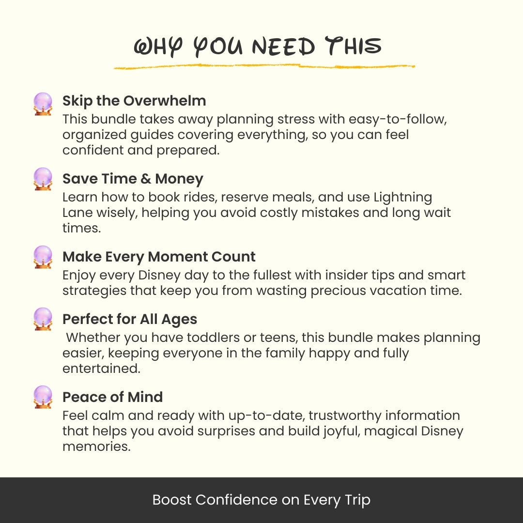 Planning a Disney vacation should feel exciting β not overwhelming. This beautifully crafted family toolkit takes the guesswork out of your 2025 trip. Whether it's your first time or your fifth, you'll walk into the parks knowing exactly what to do, when to do it, and how to keep everyone β from toddlers to teens β happy, fed, and meltdown-free.