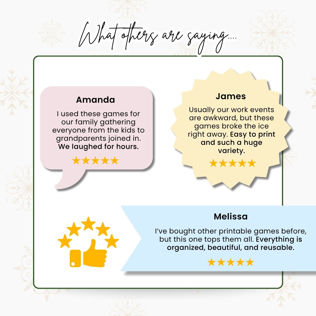 Make this Christmas season truly unforgettable with a joyful collection of 65+ ready-to-play holiday games designed to spark laughter, connection, and magical moments. Whether you're hosting a cozy family night, a classroom celebration, or a festive office party, this all-in-one bundle brings instant holiday cheer to every gathering.