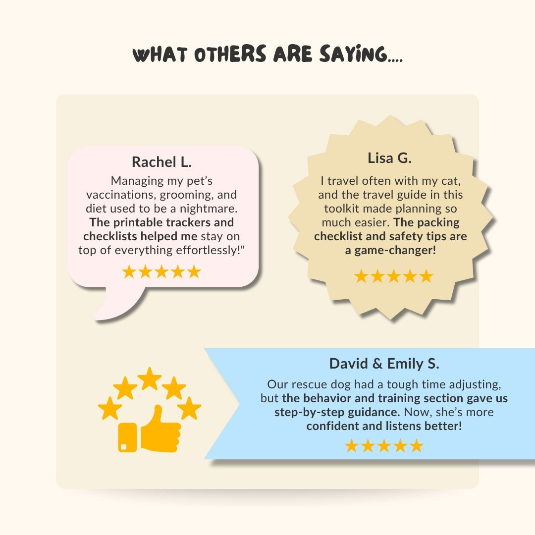 Make pet care simple and stress-free with the Ultimate Pet Care Toolkit—a 150+ page editable bundle packed with planners, trackers, checklists, training guides, safety records, and more! Designed by pet lovers and approved by animal care specialists, this toolkit supports everything from new puppy adoption to long-term pet wellness.